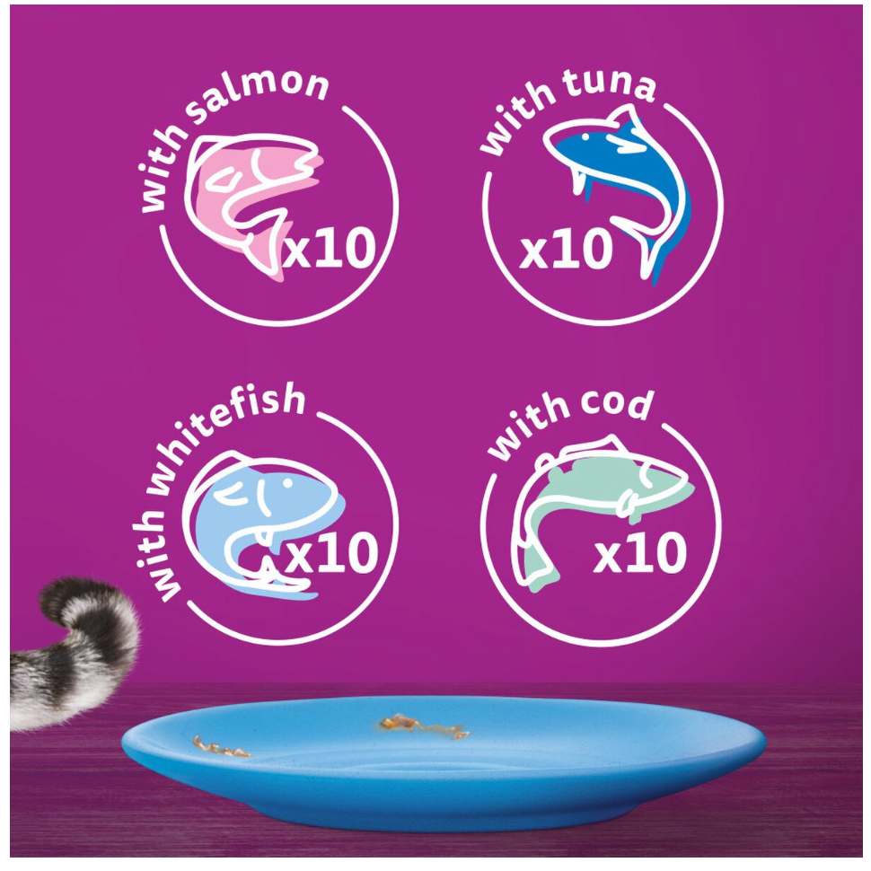 WHISKAS 1+ Fish Favourites Adult Wet Cat Food in Jelly Pouches - 40 x 85g